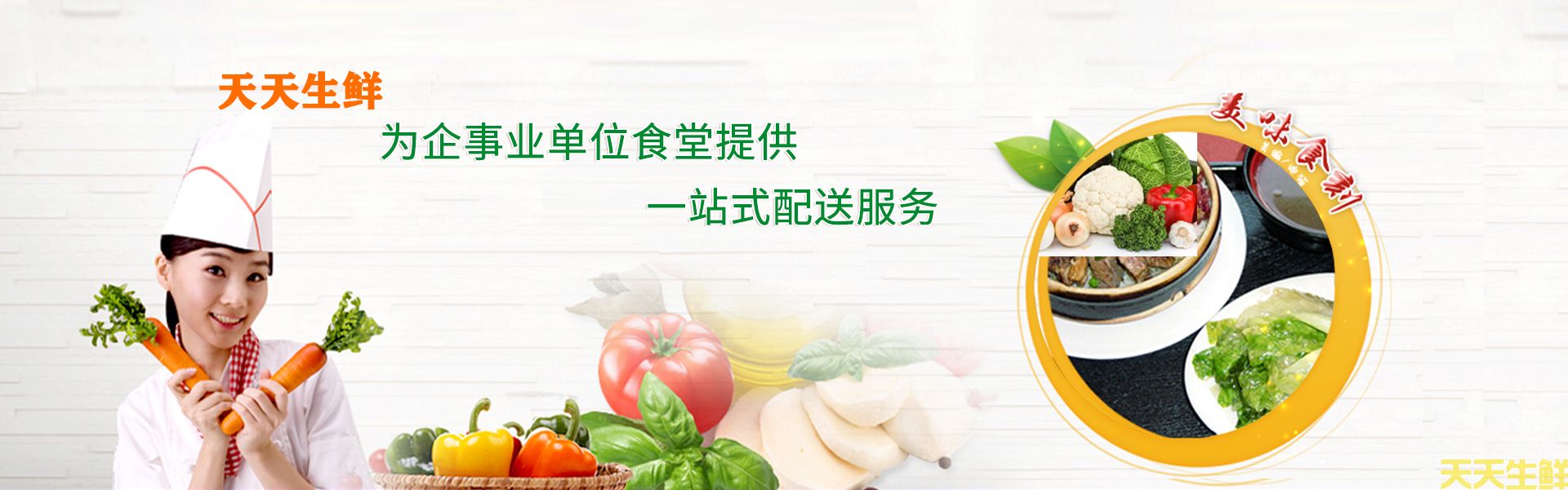 關于天天生鮮蔬菜、瓜果、鮮肉、水產、海鮮、凍品、糧油、調料,廚具為一體的專業化配送